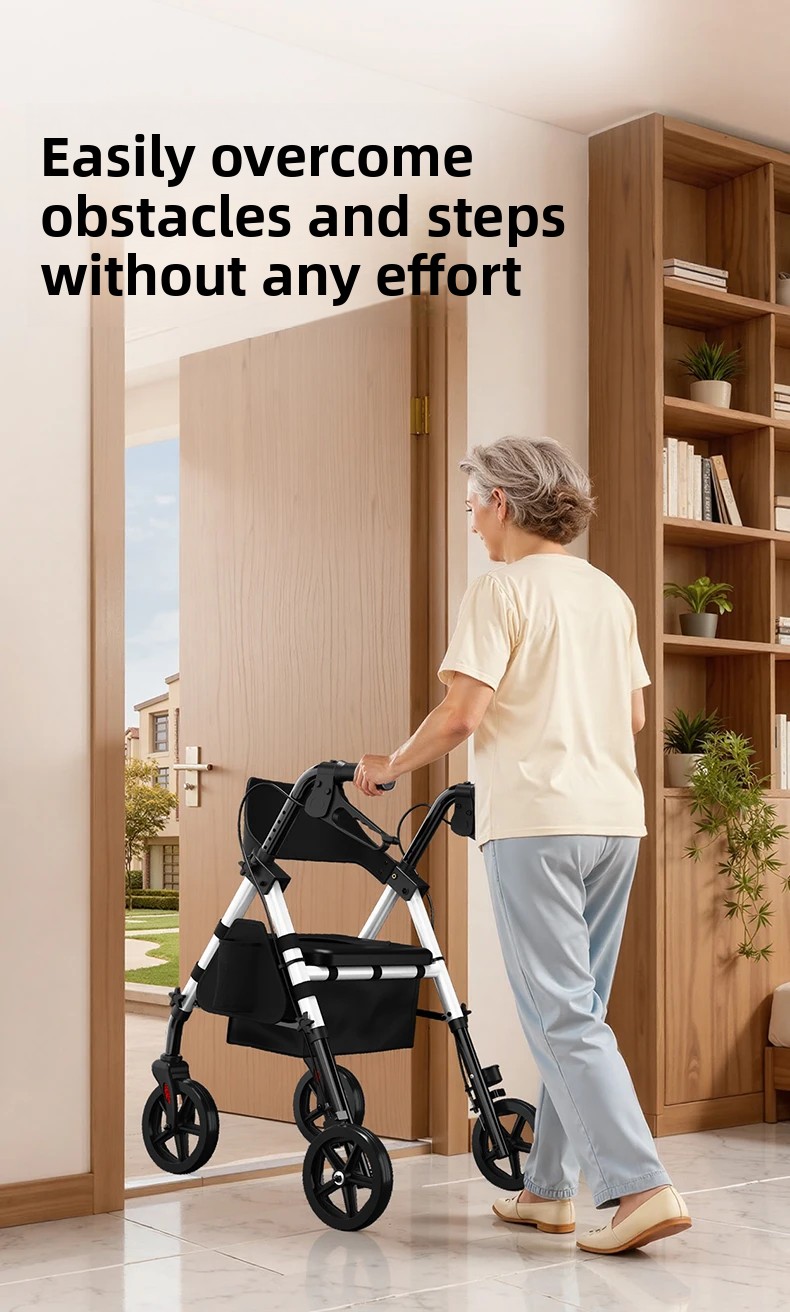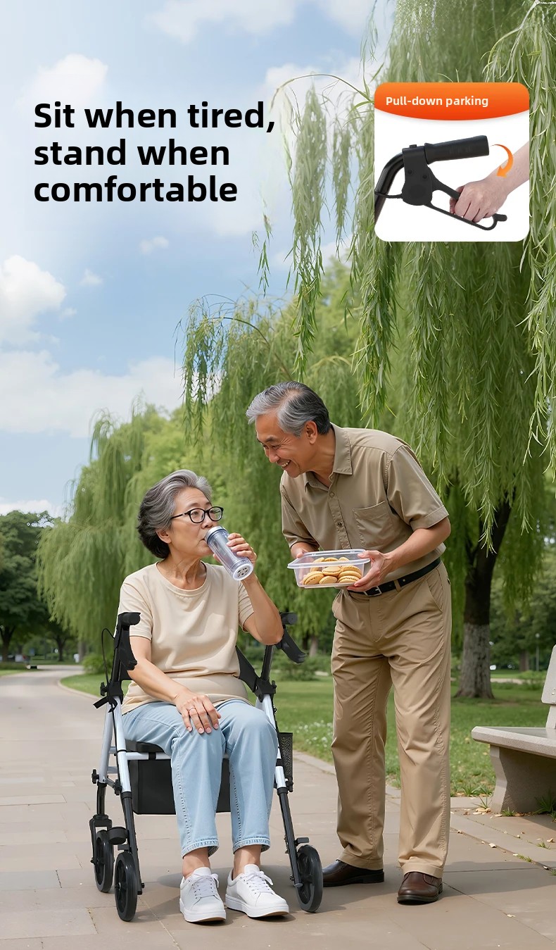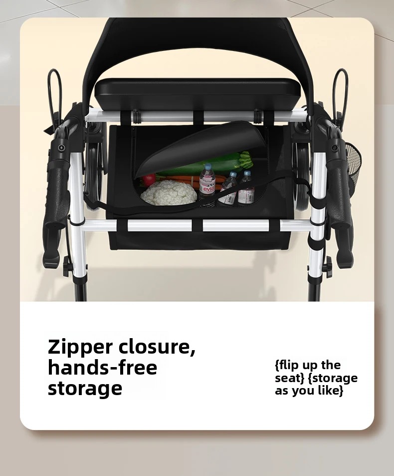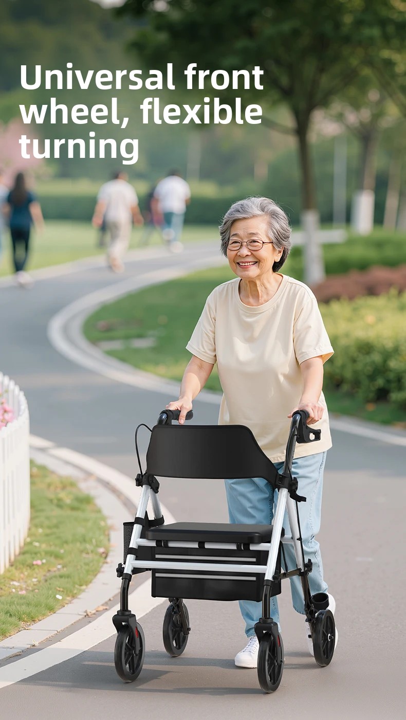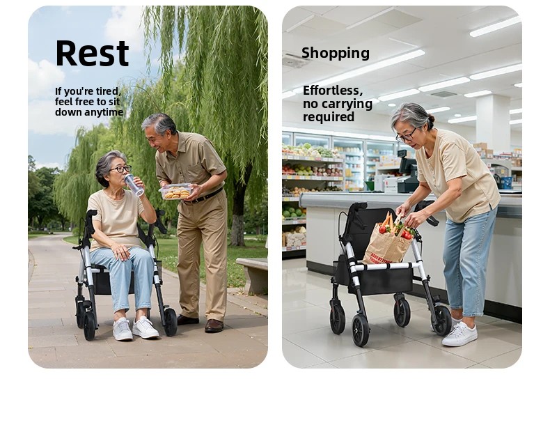‌440lbs Heavy-Duty Senior Mobility Rollator Walkers Foldable Sit /Push Walker /Shopping Basket&Adjustable Handles‌ Shopping Cart