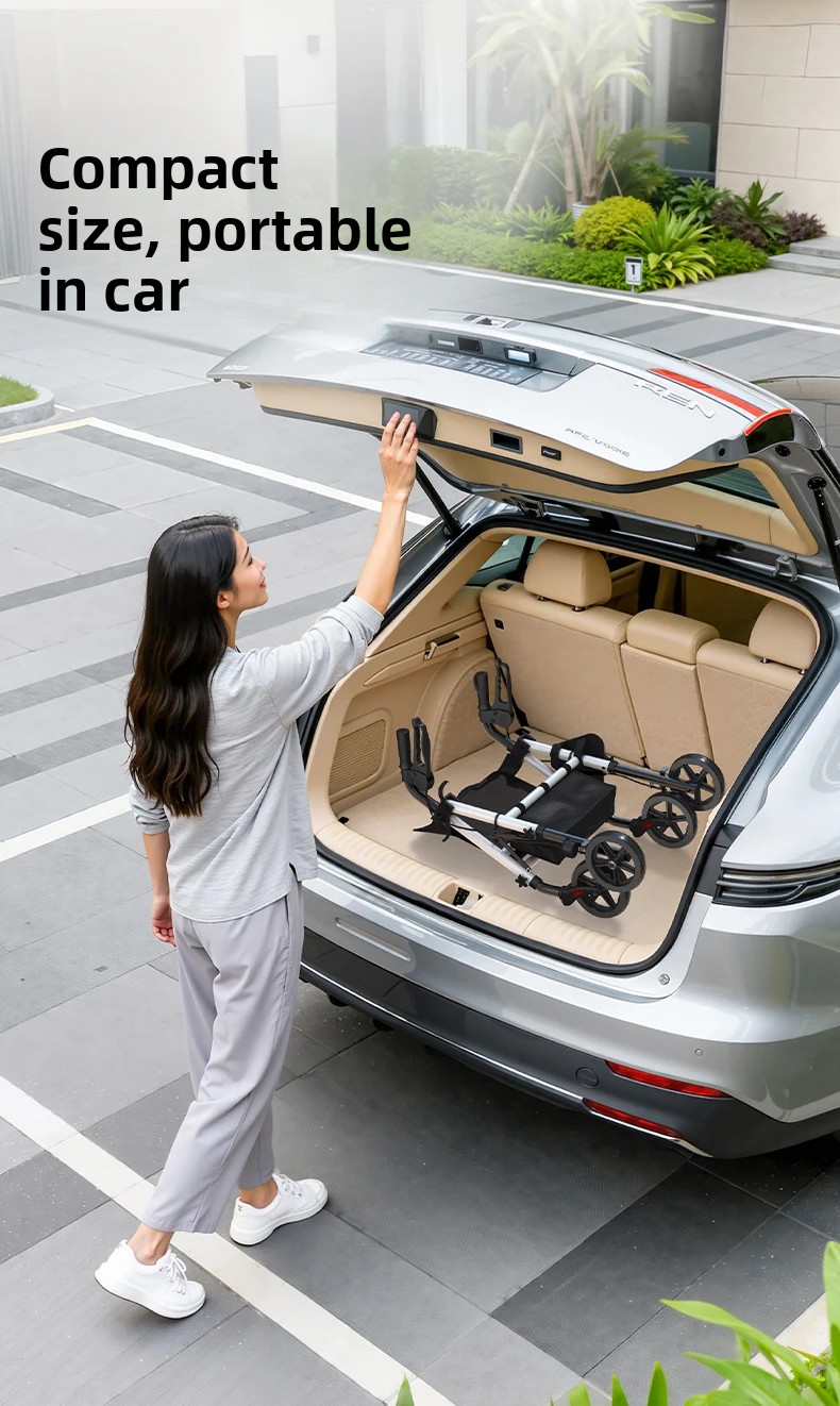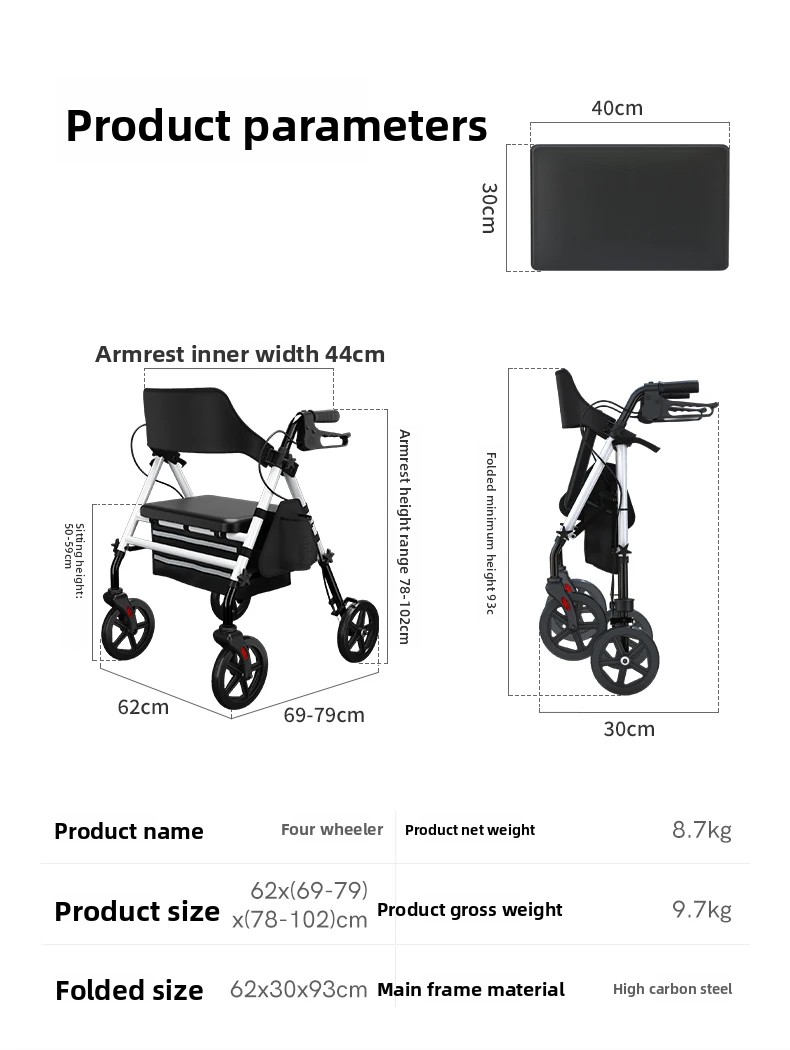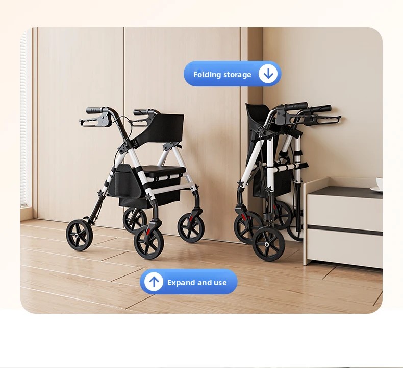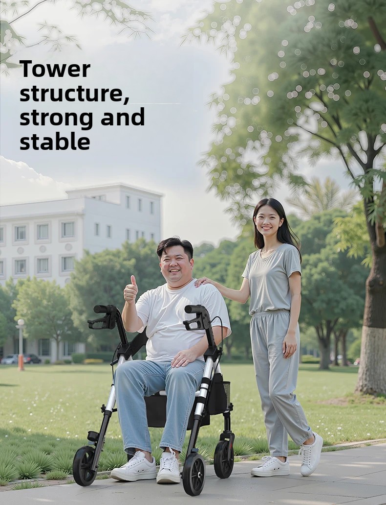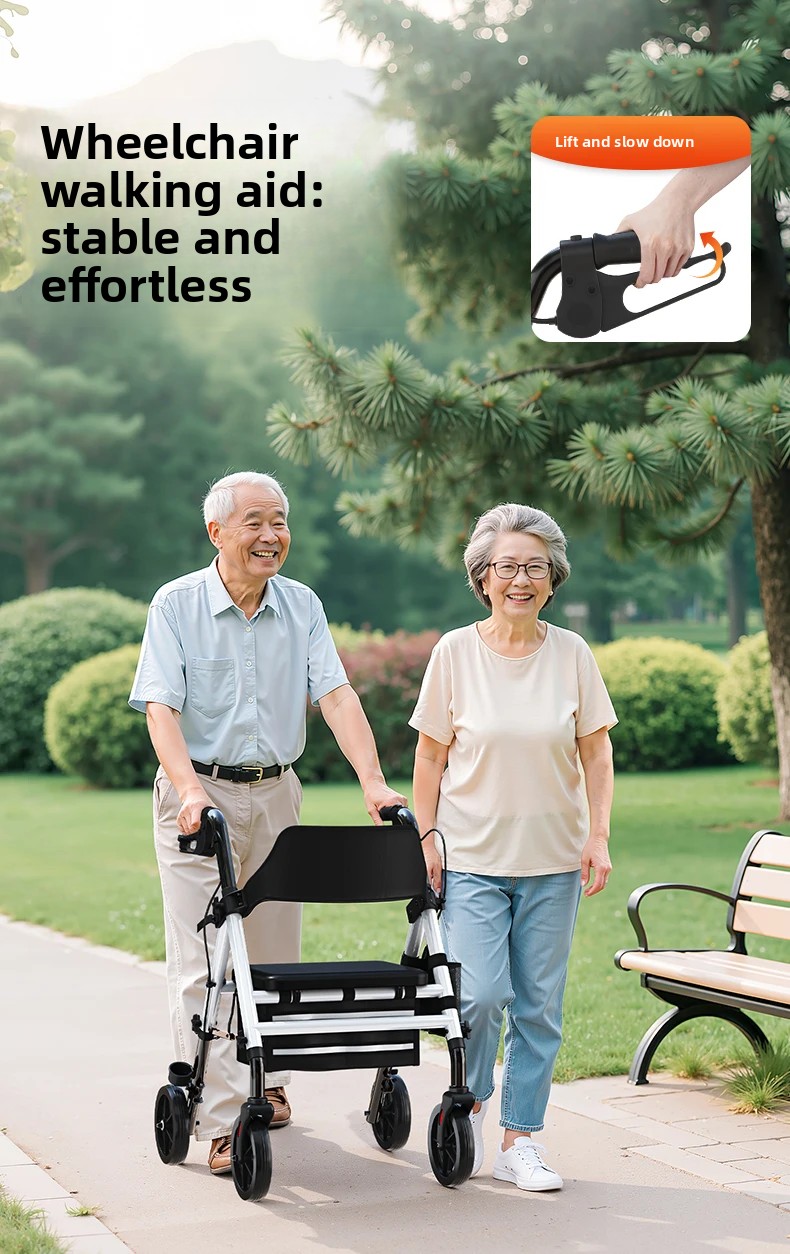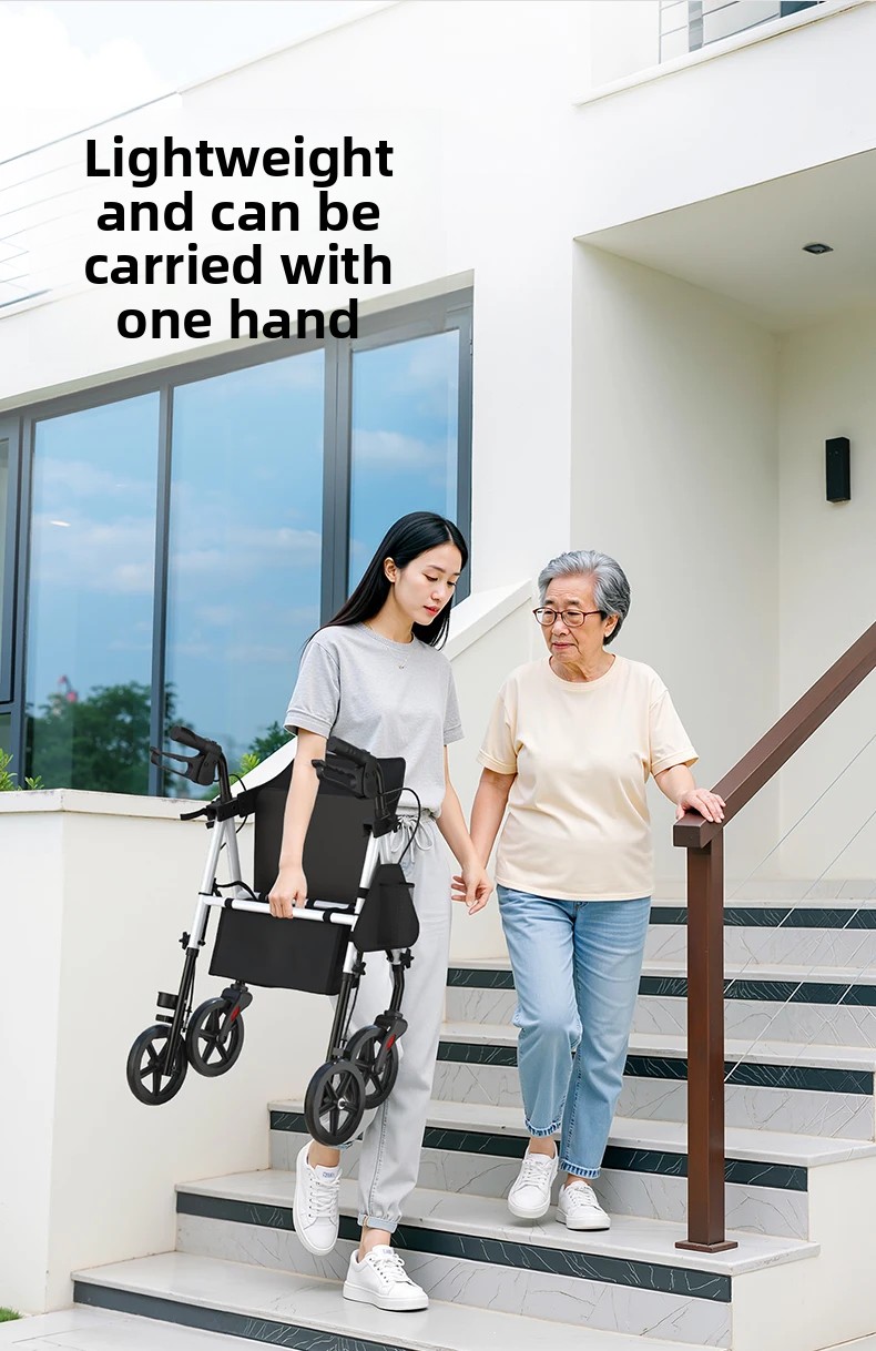 ‌440lbs Heavy-Duty Senior Mobility Rollator Walkers Foldable Sit /Push Walker /Shopping Basket&Adjustable Handles‌ Shopping Cart